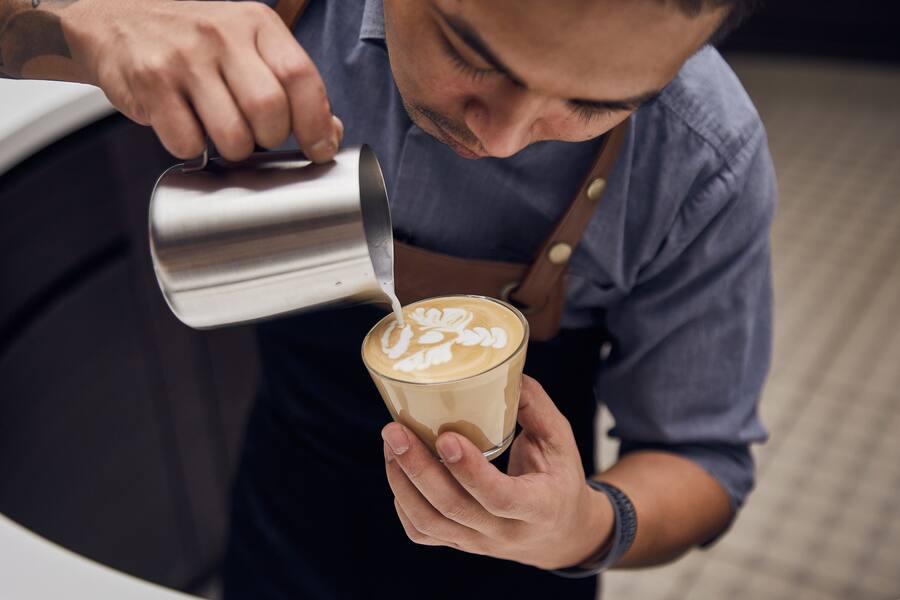 Barista «Gap» in Action: das Muster im Schäumchen wird direkt aus dem Kännchen aufgetragen