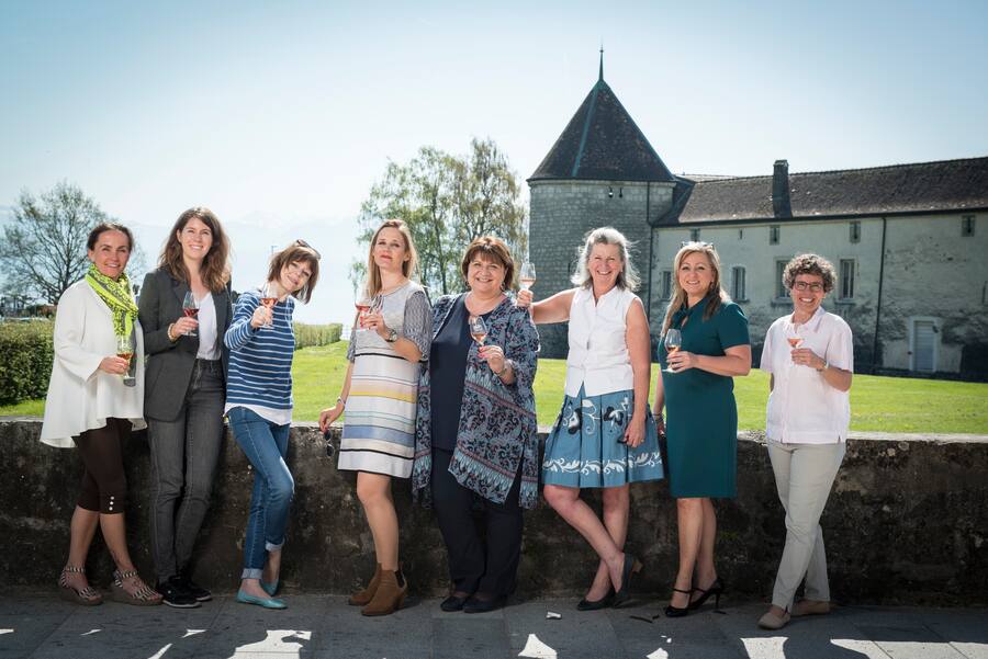 Mary-Laure Schorderet, Zoé Jobin, Annick Jeanmairet, Chantal de Senger, Nadège Fehlmann-Bonin, Coraline de Wurstemberger, Nuria Gorrite, et Pascale Vollenweider.