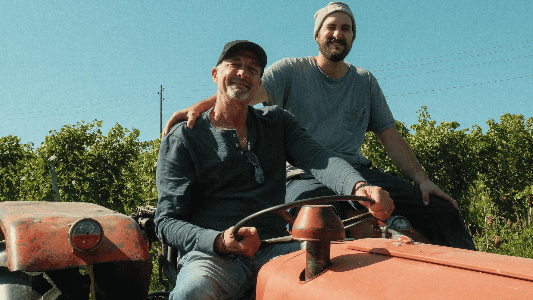 UN AUTRE FRÈRE. Au départ, c’était son frère, Lucien, qui travaillait avec le paternel au Domaine de Terre-Neuve, à Saint-Prex (VD). Mais celui-ci a renoncé à reprendre l’exploitation et a décidé de changer de voie. Simon Kind , employé de commerce dans une compagnie d’assurance voyage, en avait assez d’être assis dans un bureau en pleine pandémie et rêvait de travailler dehors. Il a sauté sur l’occasion de remplacer le frérot. Après un stage au domaine, puis une année chez Denis Bovard, à Cully, il suit la HES de Changins pour en sortir ingénieur œnologue. Depuis, le voilà aux côtés de son père dont il va prendre la succession, d’ici deux à trois ans. «C’est pas mal de responsabilités.» (Photo ci-dessus: David et Simon Kind).