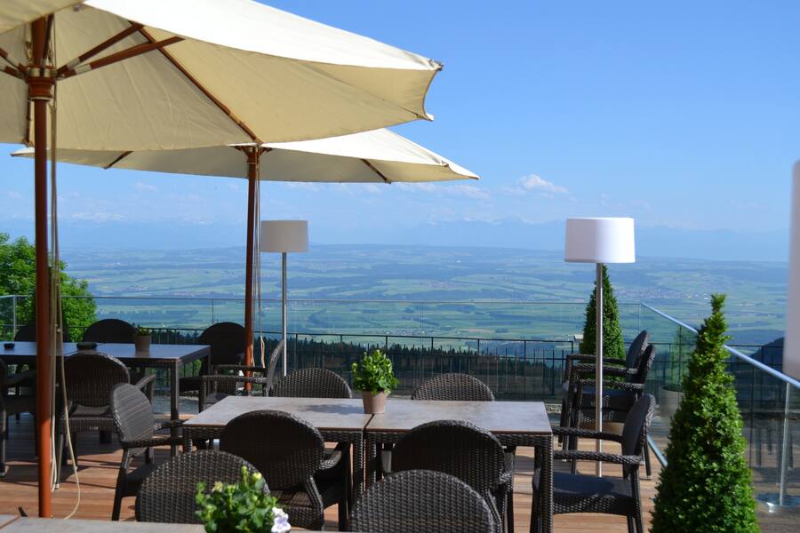 Etourdissante! La vue est extraordinaire depuis les terrasses – un deck bordé de verre - du Grand Hôtel des Rasses, ce grand hôtel d’autrefois à la façade art nouveau et aux salons Belle-Epoque qui fête ses 120 ans cette année.
