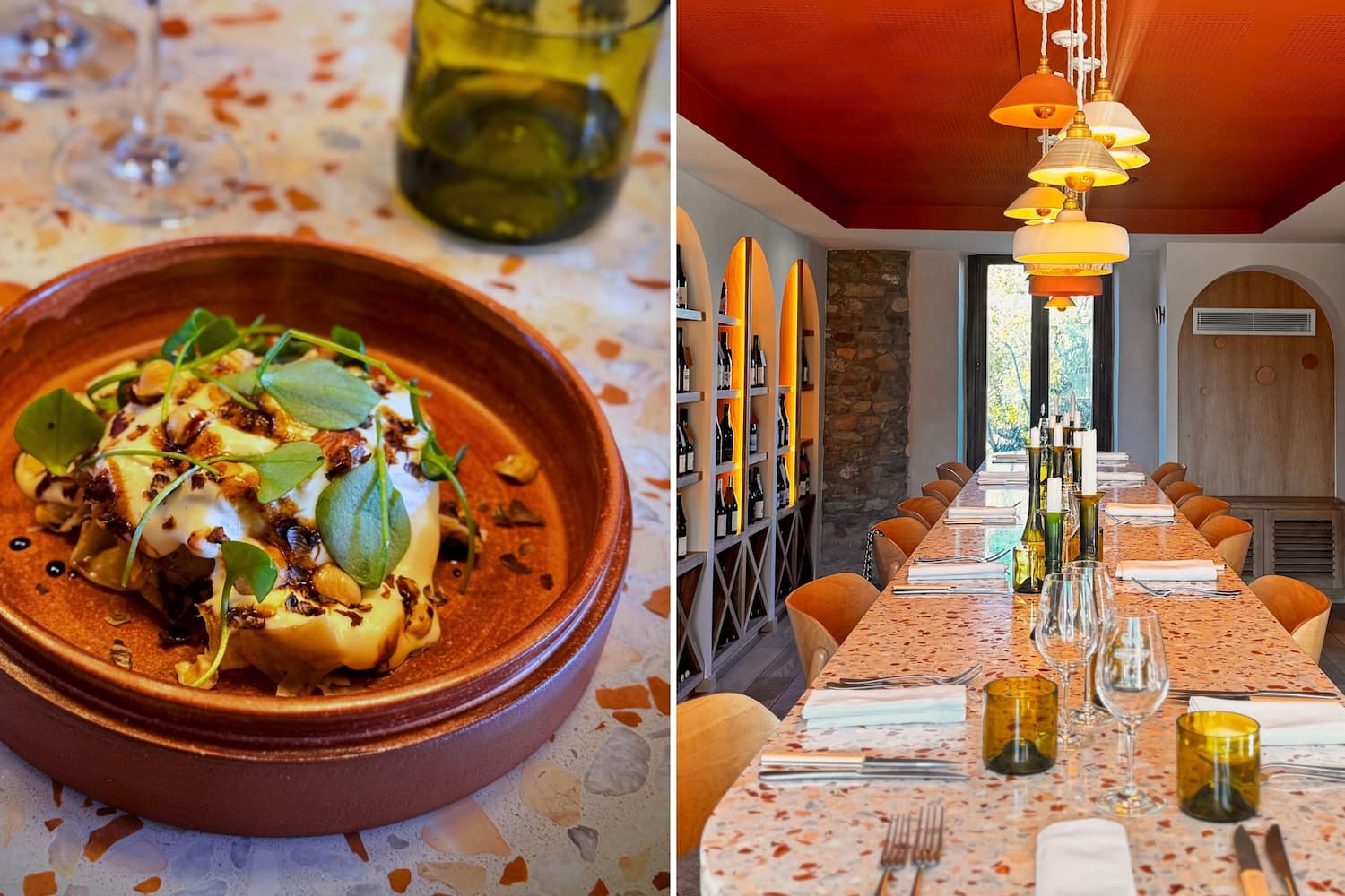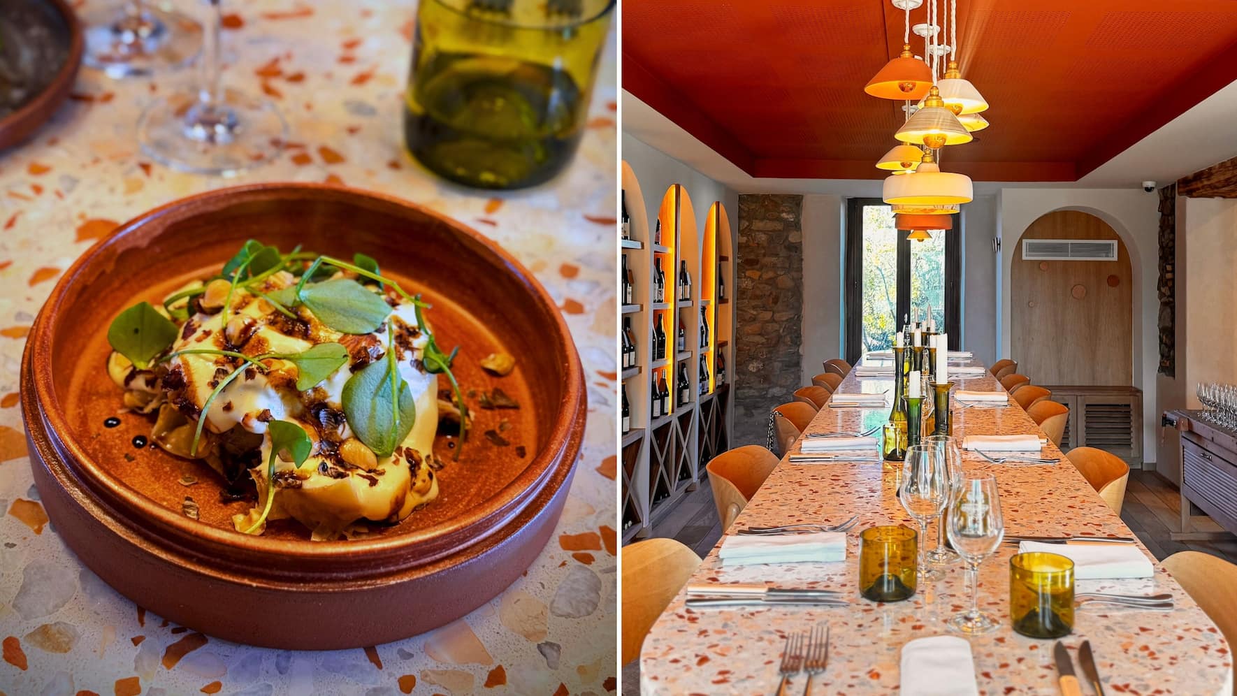 Une épicerie et une cave. Après huit mois de travaux, la maison de village a ainsi retrouvé de sa superbe. À l’intérieur, place à un décor soigné et contemporain grâce à un jeu de terrazo, de bois et de pierre. On admire en particulier cette grande et belle table d’hôte, de 10 à 12 couverts, qui court dans une salle au charme d’antan, ponctuée de belles alcôves murales où s'alignent les flacons, pour la plupart des vins nature et en biodynamie.