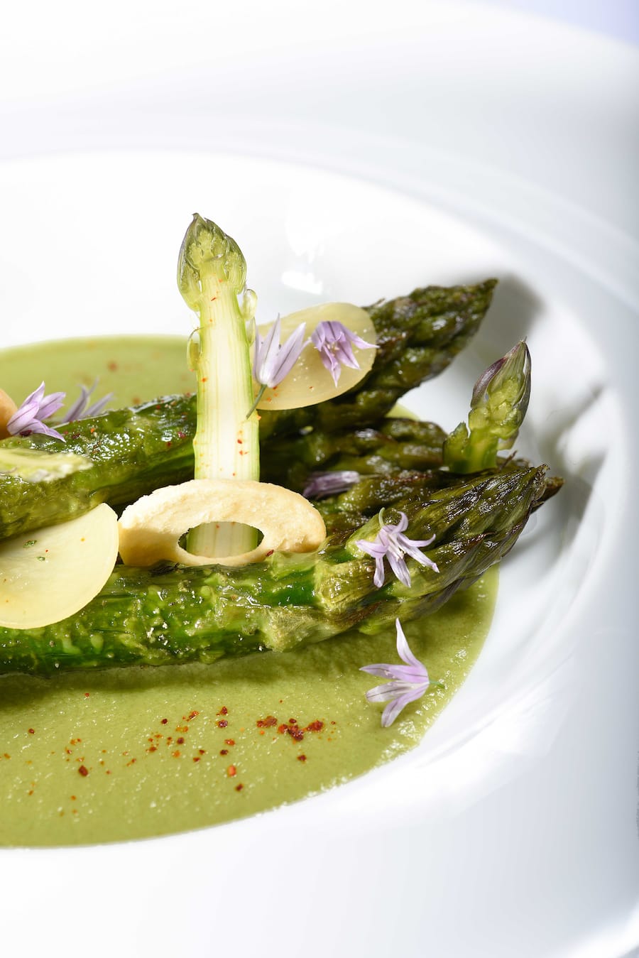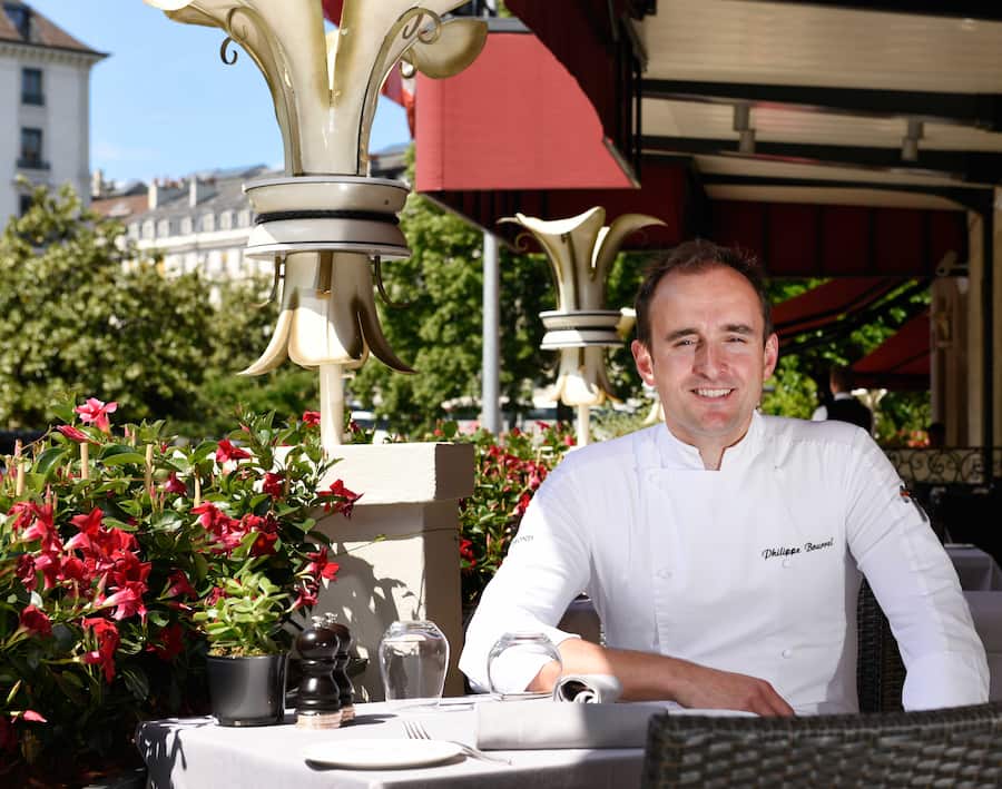 Un Jardin de saveurs. C’est chez Philippe Bourrel, le chef du restaurant Le Jardin du Richemond, que nous avons pu tester un des menus proposés lors cette Veggie Week. Salade de petits légumes de nos producteurs locaux, asperges vertes rôties et Gruyère affiné, fleur de miel de Stéphanie Vuadens…, la sobriété dans l’intitulé du menu du natif de Brives-la-Gaillarde grandi en Savoie ne laissait pas augurer l’explosion de couleurs et de saveurs jaillie de ses assiettes. Il faut dire que ce jeune chef français, formé à l’école des Vrinat (Taillevent) et Ducasse (Plaza Athénée) et aux fourneaux du Jardin depuis 2014, n’a pas besoin de boursoufler l’intitulé de ses assiettes pour attirer les gourmets. Son credo: des produits de première qualité travaillés avec précision et inventivité. Ses asperges vertes, par exemple, viennent d’une exploitation plus que centenaire du village de Cabannes dans les Bouches-du-Rhône et sont servies rôties et crûes en carpaccio ou en copeaux déposées sur un velouté aux herbes réalisé avec les pieds.
