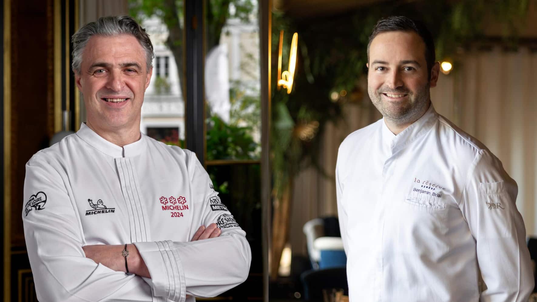 Chaux devant. Il est le chef du Gabriel, l'un des plus récents trois-étoiles Michelin. Le 11 décembre prochain, l'hôtel La Réserve à Bellevue (GE) accueillera Jérôme Banctel (à gauche sur la photo), en provenance de La Réserve Paris. Aux côtés du chef exécutif Benjamin Brial, le Parisien va préparer un menu en six plats, dont ses fameuses carottes à la chaux et gingembre acidulé, sa signature.