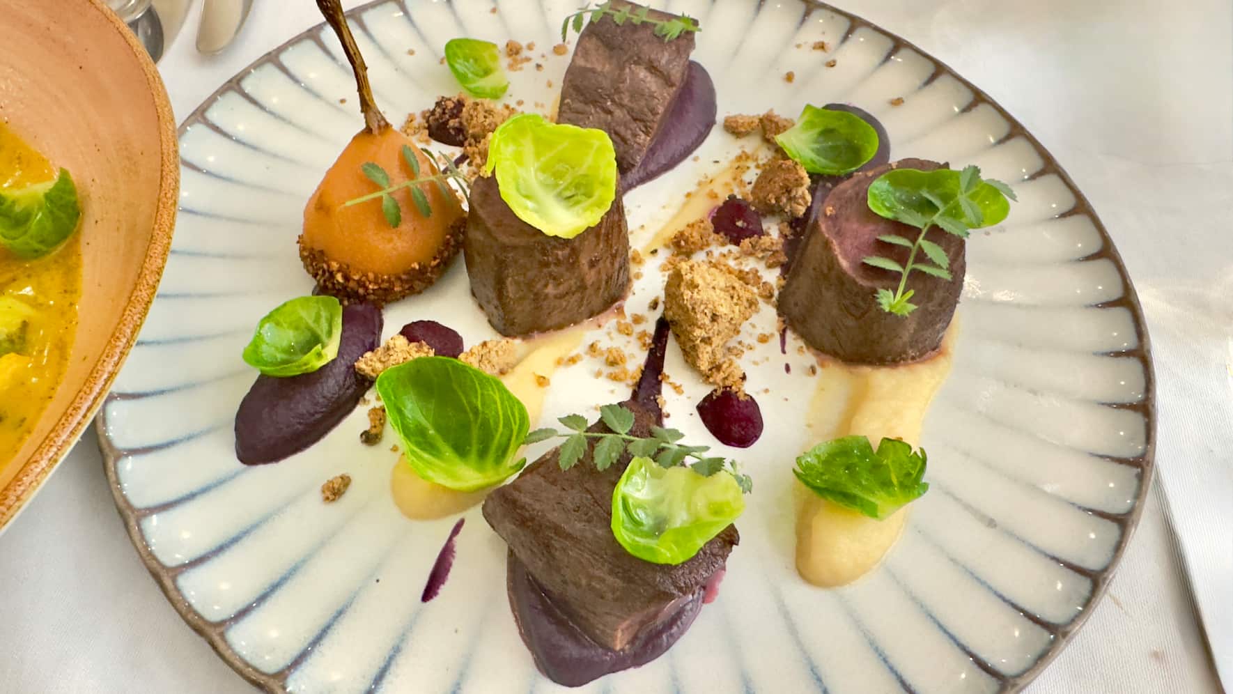 Pas de dessert! Mais là où Xavier Vulliez révèle son talent, c'est dans ses menus de saison, tels que celui dédié à la chasse. «Je n’en mange pas moi-même, explique-t-il. Mais c’est un moment important dans le calendrier», impossible donc de faire l’impasse! Et c’est dans son désamour que Xavier trouve sa signature, avec une chasse créative particulièrement légère et subtile. On chavire par exemple pour son entrée un petit tartare de chevreuil mariné à l'huître plate, particulièrement iodée, surmonté de noisettes: une petite merveille! Le pari s'oriente ensuite sur la délicatesse des ravioles de jarret de chevreuil avec des pickles de chanterelles, baignées dans une sauce chasseur légère travaillée, presque en bouillon. Enfin, pas de dessert dans ce menu, mais une troisième assiette, un tantinet plus classique (noisette de chevreuil, poire à botzi, choux de Bruxelles et spätzli aux épinards).