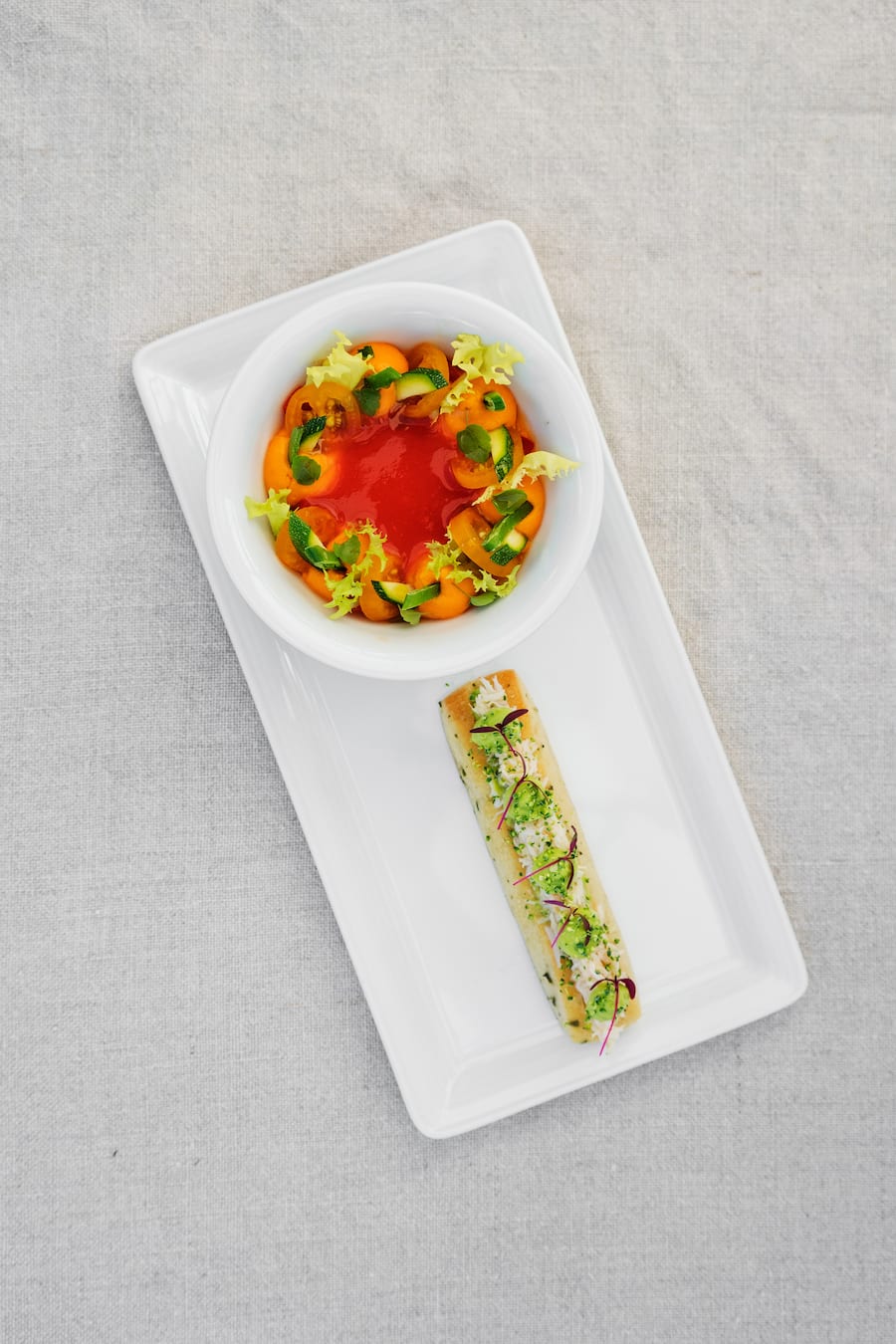 Consommé froid de tomates et toast au crabe et avocat, signé Franck Giovannini.