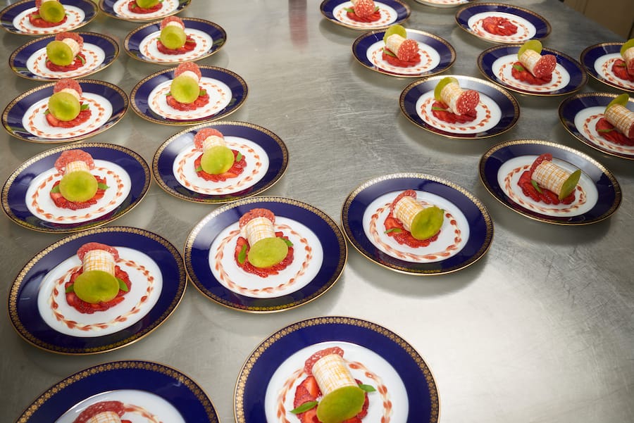 Les chefs s'affairent en cuisine pour réaliser un menu inoubliable.