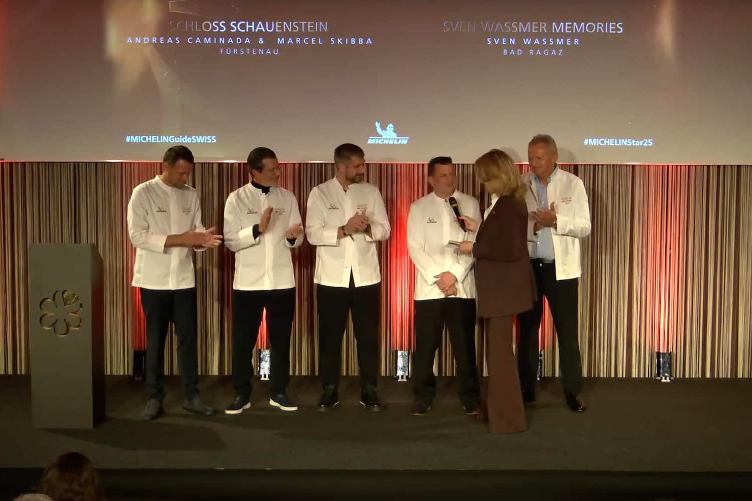 Du jaune au rouge. Après le jaune de GaultMillau début octobre, c'était une soirée sous le signe du rouge qui a rassemblé la fine fleur de la gastronomie suisse, ce lundi 20 octobre sur le campus de l'Ecole hôtelière de Lausanne (EHL). Le guide de Bibendum a décerné 21 nouveaux macarons, dont cinq en Suisse romande. Une maigre récolte, somme toute, même si le ratio d'environ 20% respecte la démographie.
