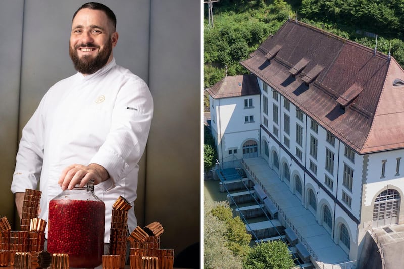 Leuk,  le 17  septembre 2023 , Parcours gourmand sur le golf de Leuk, en compagnie de plusieurs chefs étoilés ici Romain Paillereau avec son Sandwich de Brochet et aux vinDomaine Javet et Javet représenté par Etienne Javet © Sedrik Nemeth