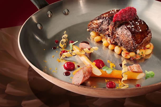 Romarin, ail, huile d'olive... Une magnifique assiette de viande de veau signée Denis Martin.