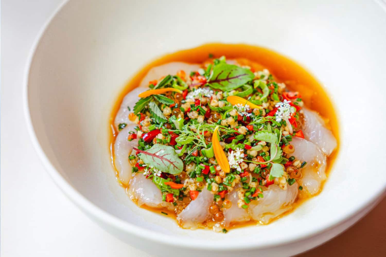 Ceviche de maigre et mayonnaise au miso