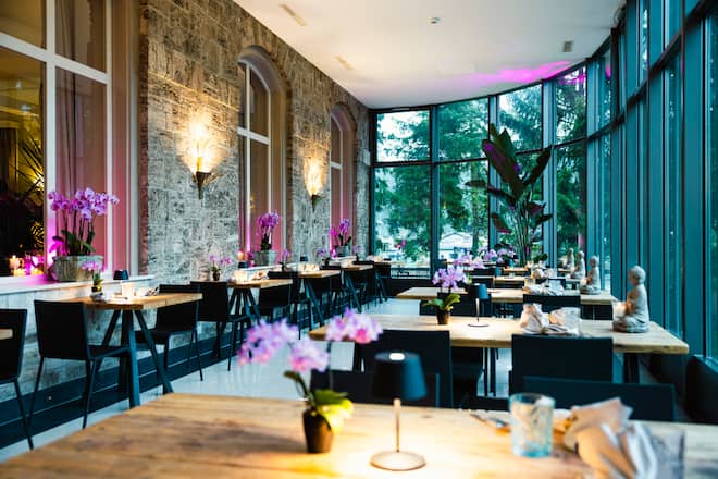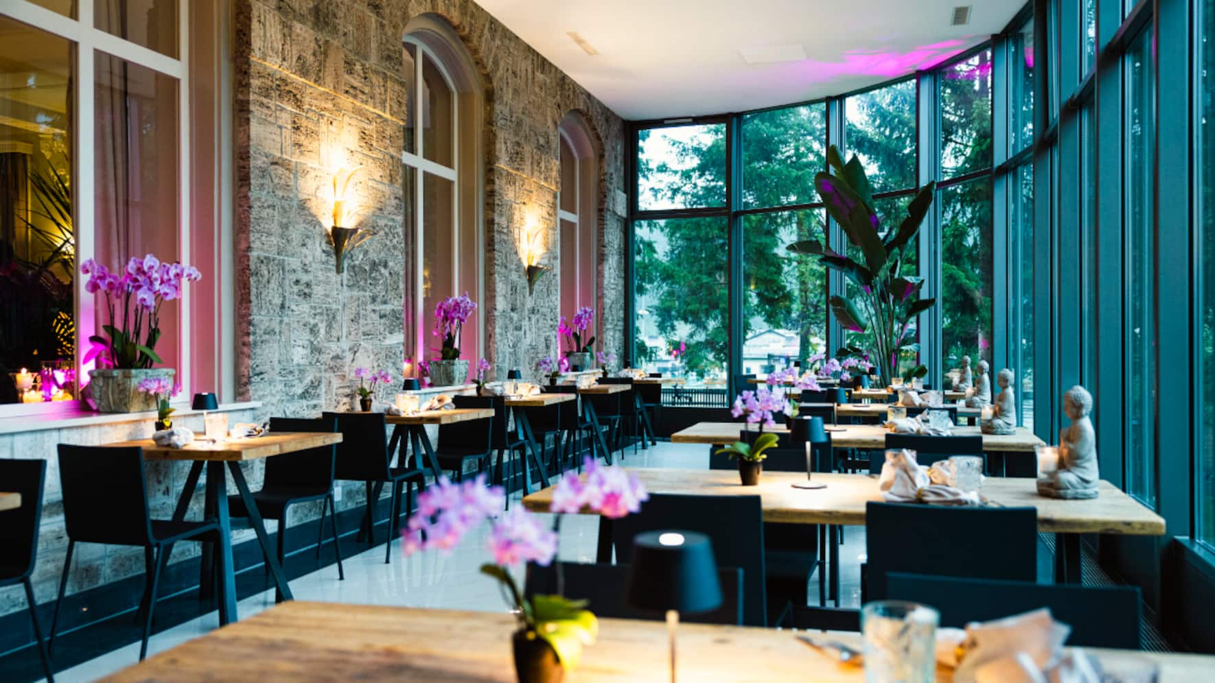 Darben muss man im sympathischen Vier-Sterne-Palast nicht. Aperitif in der prächtigen Jugendstilhalle, dann ab ins «Grand Restaurant», ins mediterrane «Giacomo’s» oder ins rustikale «Chäs-Beizli».