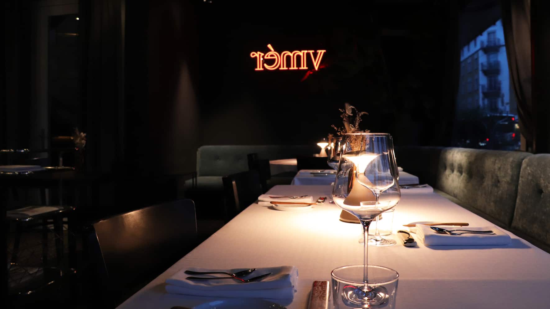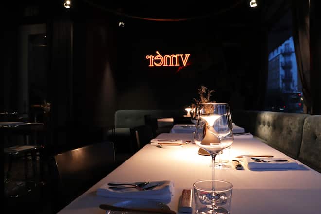 Das Pré-Dessert ist ebenso gut wie witzig: Ein Marillensorbet mit Pistazienstreuseln und eingelegten Johannisbeeren wird von geschäumter Berliner Luft (Pfefferminzlikör) gekrönt. Und am Schluss interpretiert die Patisserie die traditionelle Kombination Erdbeeren-Rhabarber mit intensiver Erdbeer-Cheesecake-Mousse und Rhabarberglace gekonnt neu.