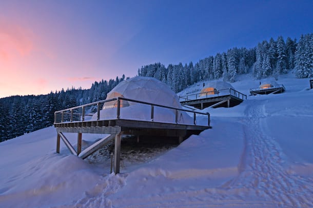 Gut getarnt verstecken sich 18 Whitepods in den Walliser Alpen. Ein luxuriöses Hütten-Hotel.