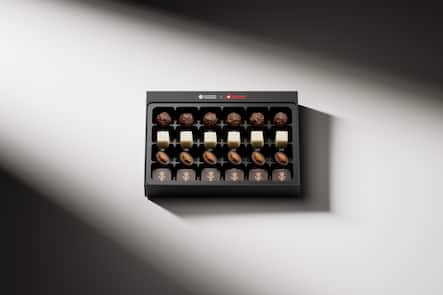Keine Sorge: Die begehrten SWISS Schöggeli gibt’s weiterhin. Neu sind die Pralinen von Aeschbach Chocolatier.