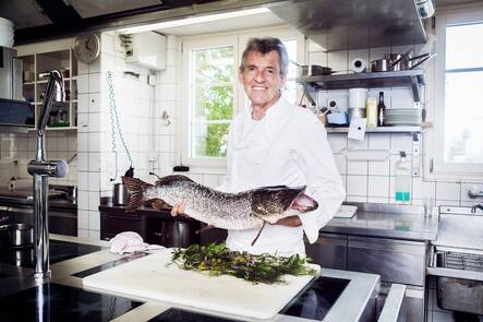 Stéphane Decotterd hat erst kürzlich sein Konzept erneuert: Er ersetzt Luxusprodukte durch regionale Produkte. Das gilt natürlich auch beim Fisch. Der kommt jetzt aus dem Genfersee.