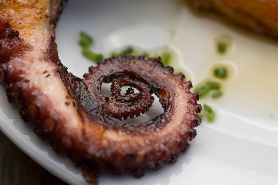 Pulpo muss erst vorgegart werden, bevor er auf den Rost kommt und Farbe annimmt.