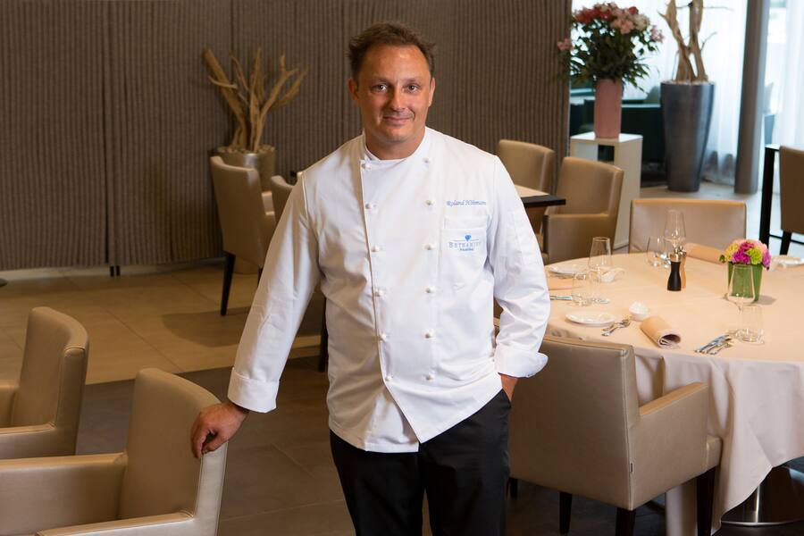 Zander & Gurken Tapioka. Für Küchenchef Roland Höhmann, der zuvor in Top-Hotels (Tschuggen, Eden Roc und Alden Splügenschloss) arbeitete, sind die verschiedenen Bedürfnisse seiner Gäste Herausforderung und Inspiration zugleich. «Eine frische und ausgewogene Küche trägt auch zur Genesung bei», sagt er. Seine Vorliebe für leichte Fischgerichte kommt da äusserst gelegen. Viele Jahre war Höhmann als Schiffskoch auf See, bereiste die Welt. Kulinarisch hat es ihm vor allem Asien angetan. «Mindestens zweimal im Jahr bin ich dort. Am liebsten besuche ich die Märkte», sagt er. Diese Eindrücke finden sich zuhause auf der Menükarte wieder: Zum Zander gesellt sich ein aussergewöhnliches Gurken Tapioka, zum Dessert gibts einen Exotic Dream mit exotischen Früchten, Litchisorbet und Tropicalespuma.