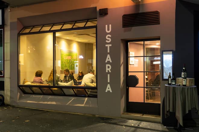 Nur fünf Gehminuten vom Bahnhof Oerlikon entfernt ist die «Ustaria». Und hier stösst man auf alte Bekannte: Küchenchef Robert Burri und seine Frau, die Gastgeberin Maria Lutz Burri. Sie wirteten bis 2023 im «Alten Löwen» im Kreis 6 und sind nach einer Auszeit, in der sie mit dem VW-Bus durch Europa reisten, wieder am Start: «Wir haben rund 1000 Adressen unserer Stammgäste mitgenommen und angeschrieben – das war unser Startkapital hier in Oerlikon», sagt Robert Burri.