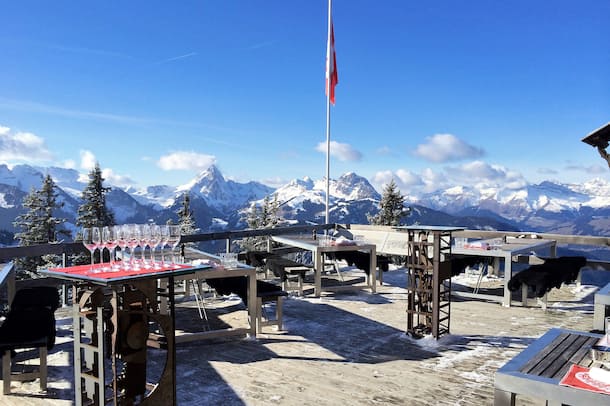 Gstaads Geniesser zieht’s in der Wintersaison mittags auf den Wasserngrat: Wienerli und Fondue auf 1940 Meter.