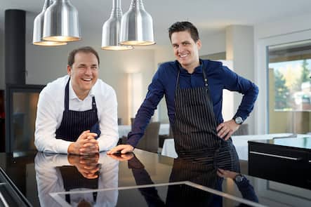 Christoph Oliver und Agron Tunprenkaj begrüssen am Wochenende Gäste in Stansstad NW im Wohnzimmer.