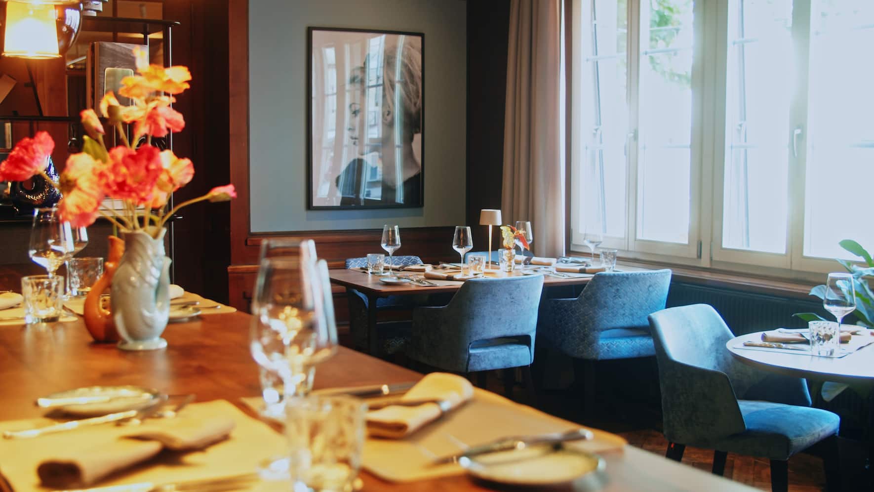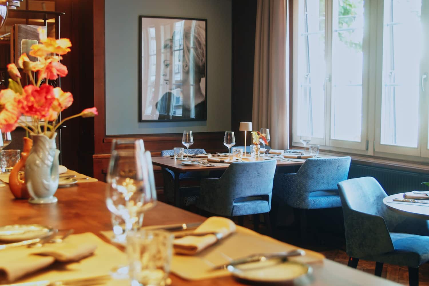 Am Abend bestellen die Gäste im «Bären» – einem zeitgemäss eingerichteten Betrieb mit angenehmer Apéro-Bar an der Marktgasse mitten in Langenthal – gern das mehrgängige Menü. Da serviert Küchenchef Ramon Stutz etwa eine Entenleber-Praline im knusprigen Haselnussmantel und mit säuerlichem Apfelgel, dank Apfelchips, Nusscreme und einer Granny-Smith-Perle liebevoll aufgepeppt. Der zweite Gang stammt von Entremétier Pavel: eine intensive, gut gesäuerte Randensuppe mit Siedfleischwürfeln, Kartoffeln und Kohl, begleitet von Sauerteigtoast, Sauerrahm und einer Tranche Guanciale. Für den Hauptgang ist Saucier Ronny verantwortlich: Er präsentiert ein etwas gar lang gebratenes, aber zartes Kalbsfilet an Pommery-Senf-Sauce mit einem Kartoffelknödel an Steinpilzsauce. Das Extra hier? Paniertes Kalbsbries mit saisonalem Gemüse, also Rande und Rosenkohl.