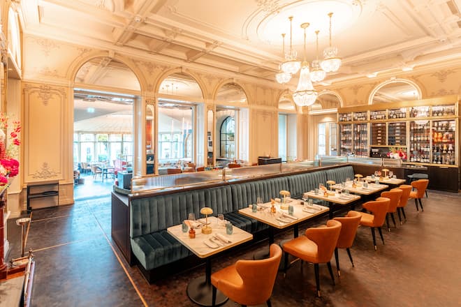 Beim Hauptgang weckt der Coq au vin 3 (hoch drei) unsere Fantasie, auch wenn uns der Service warnt: «Eine moderne Interpretation.» Den Schenkel kriegen wir wunderbar altmodisch mit Speck und kräftiger Sauce. Die Brust mutiert zur knusprigen Praline, dazu gibt’s einen eher trockenen Poulet-Smashburger. Die «moderne Interpretation» ist bereits wieder Geschichte; Luzerner Gäste mögen es klassisch. Wir mögen Bouillabaisse und wurden nicht enttäuscht. Hummer, Steinbutt, Jakobsmuscheln, Crevetten und Miesmuscheln schwammen in der Brühe. Eine Edelfischsuppe ohne Ecken und Kanten, eher von der braven Art. Erfreulich die Weinauswahl. Den Château Phélan Ségur 2021 gab’s glasweise aus der Jeroboam (3-Liter-Flasche).