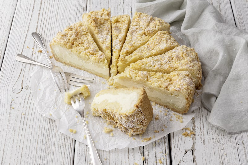 Die zarte Quarkfüllung mit zitroniger Note wird mit einer knusprigen Streuselschicht bedeckt. Ausprobieren!