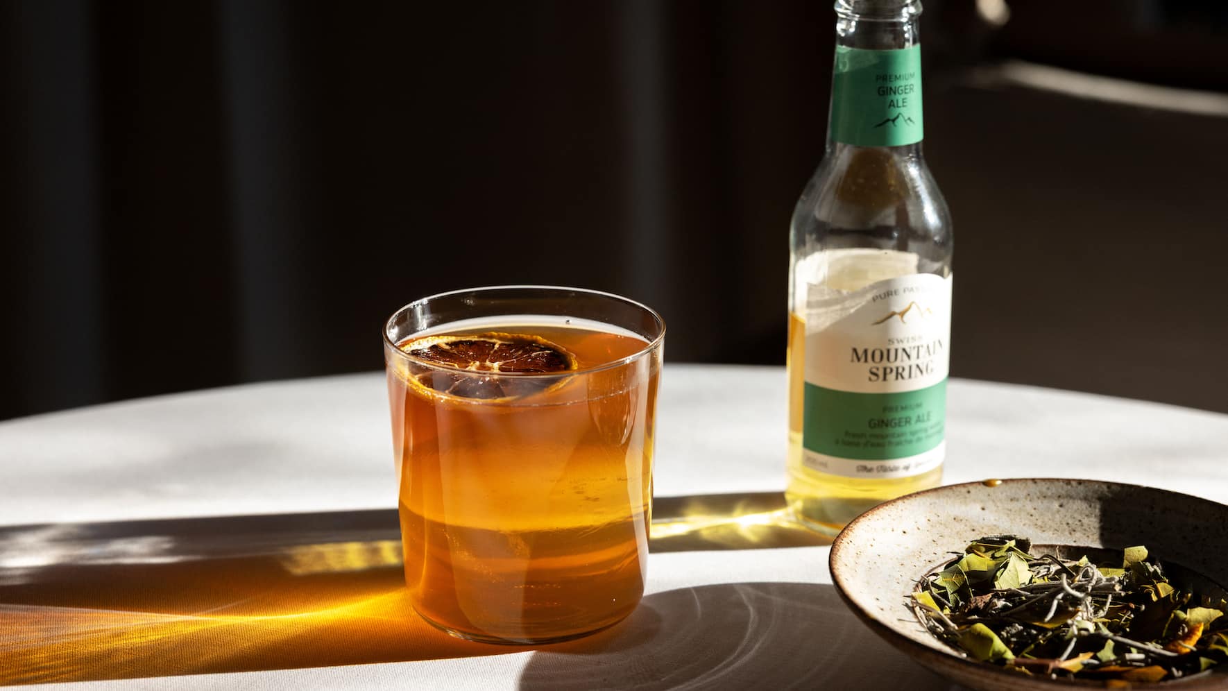 Ins Tumblerglas geben und mit Ginger Ale auffüllen.
