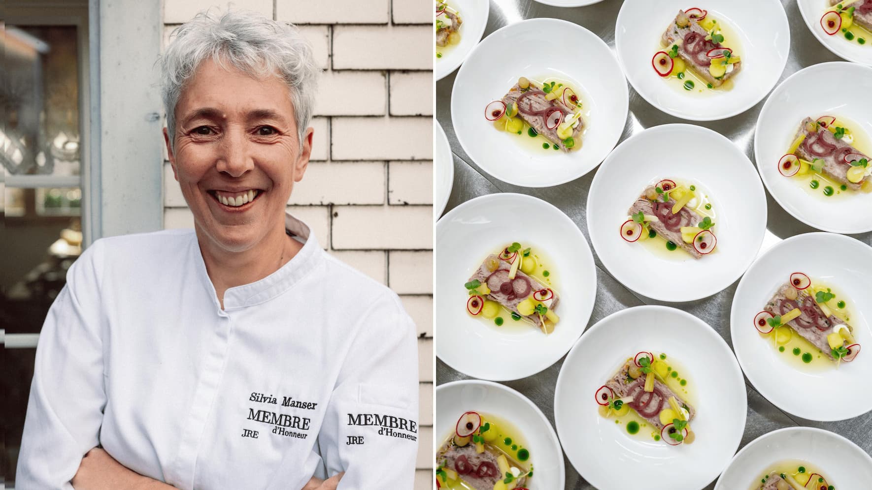 Mit Akribie und Esprit. Wer bei Silvia und Thomas Manser zu Tisch sitzt, streckt unwillkürlich die Arme aus und lehnt sich gemütlich zurück. Die «Truube» in Gais AR, wo die beiden seit 2009 wirten, ist der bodenständige Gegenentwurf zum unterkühlten Fine-Dining-Tempel vom Reissbrett, ein wohliger, organisch gewachsener Kokon der Gastfreundschaft. Silvia Manser setzt am Herd ihre Vision von einer raffinierten, aber nie abgehobenen Küche mit Akribie und Esprit um, der diplomierte Landwirt Thomas Manser kümmert sich an der Front um die Gäste und packt sein grosses Weinwissen in humorvolle, für alle verständliche Worte. Bild oben: Silvia Manser und ihre Tafelspitzterrine.