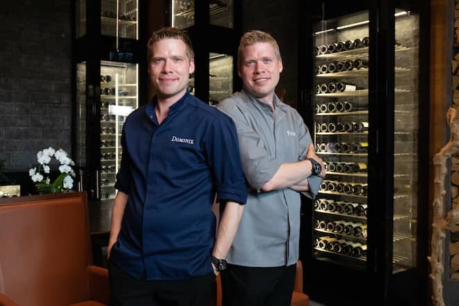 Perfektionisten sind sie beide. Haben die Zwillinge und Grandes-Tables-Köche während der Dreharbeiten neue Seiten aneinander kennengelernt? «Ich gelte ja eher als der Perfektionist von uns zwei», sagt Dominik Sato. «Mich hat überrascht, wie sehr mein Bruder plötzlich auch alles für den Sieg gegeben hat.» Was erwidert darauf Fabio Toffolon? «Mein Bruder hat oft eine grosse Klappe – für mich war es verblüffend, wie er manchmal plötzlich sehr ruhig wurde.»