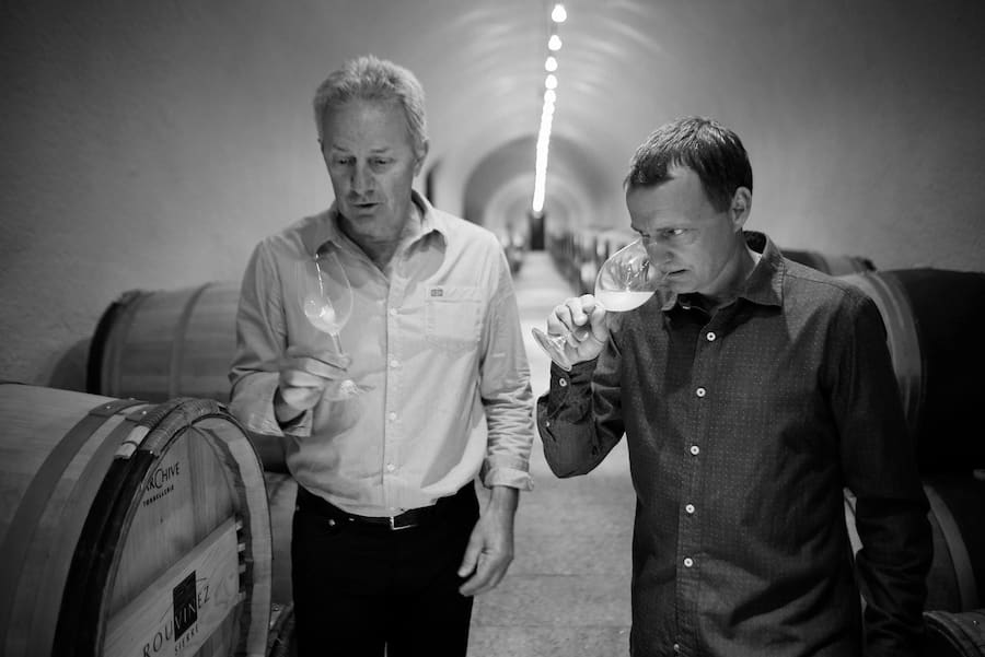 Weinprobe im Tunnelkeller von Dominique Rouvinez: Die Hefe trübt den jungen Wein.