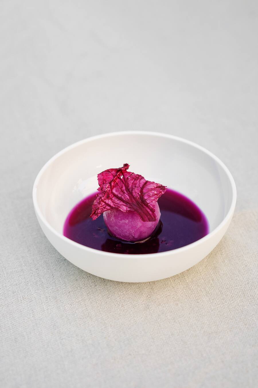 Nach zwei Stunden bereits ausverkauft: Caminadas geeiste Rotkohl-Kugel mit Senf.