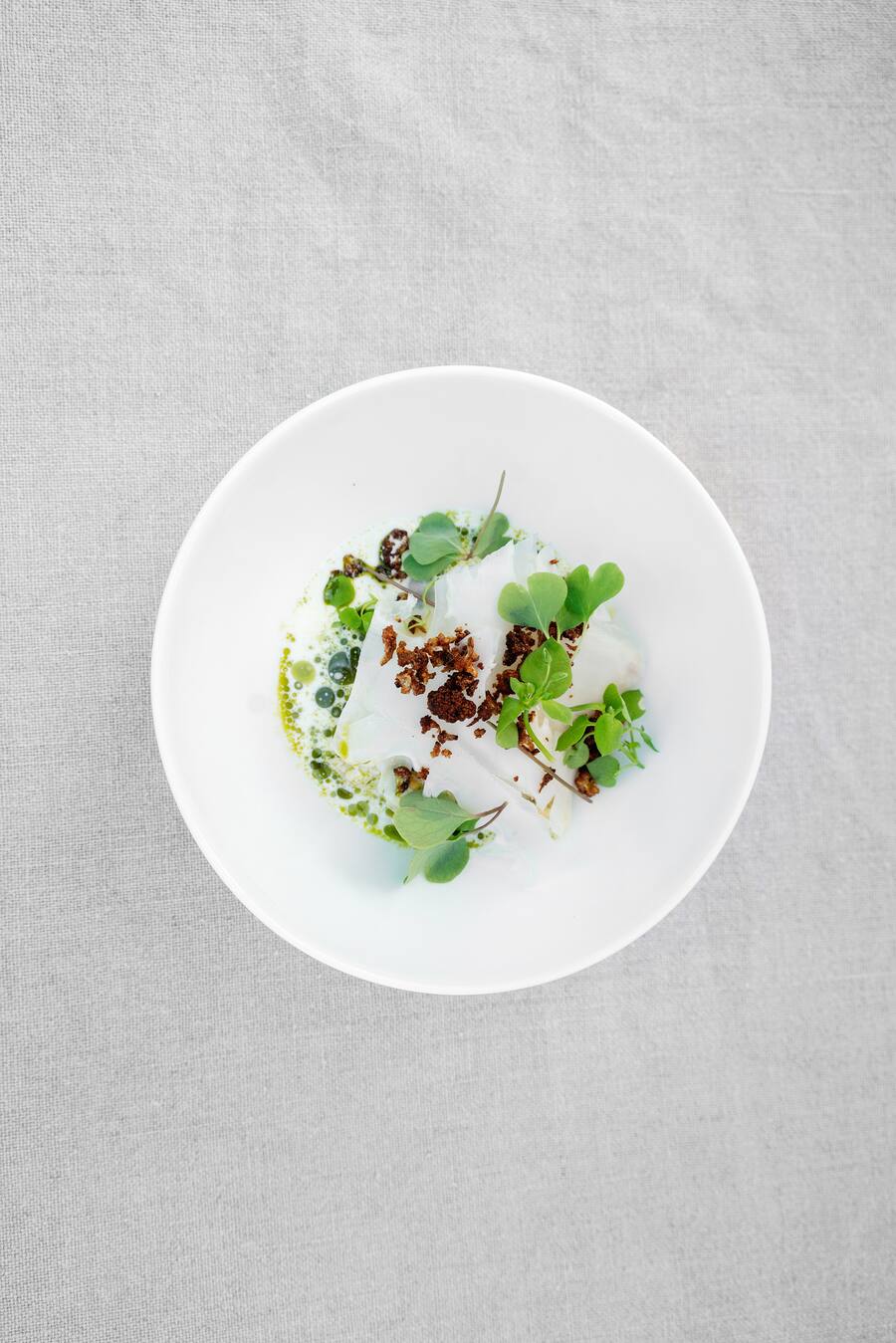 Flusskrebse aus Galizien, eingelegte Jolly Melonen, grünes Curry, Koriander, Bronzefenchel, Estragon, Dillblüten und Zitronengrasöl – wie Heiko Nieder diese Zutaten zu einem harmonischen Gericht vereint, grenzt an ein Wunder. Dank perfekter Dosierung überwiegt keine Zutat die andere, während der Flusskrebs ganz klar der Star auf dem Teller bleibt.