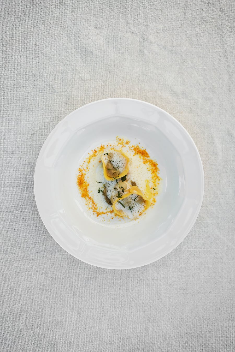 Imposant wie viel Geschmack Kalberer zwischen den dünnen Pastateig der Tortellini gepackt hat: zwei Tage geschmorter Schweinebauch, geschmorte Auberginen, verfeinert mit Orange an einer Zitronen-Beurre blanc. Verveine und dehydrierte Orange setzten weitere Akzente.