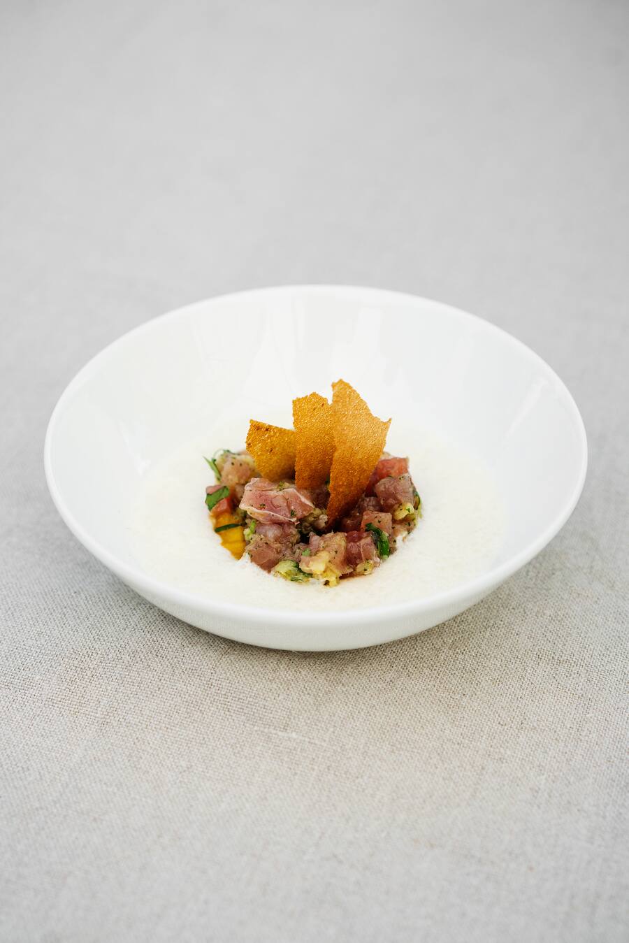 Asiatisch mariniertes Thunfischtatar mit Mango und Zitronengras.