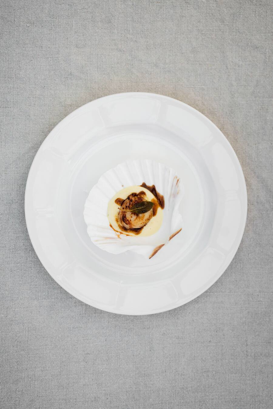 Zutaten aus nah und fern: Jakobsmuschel mit Kartoffelstock, Speck und Salbei.