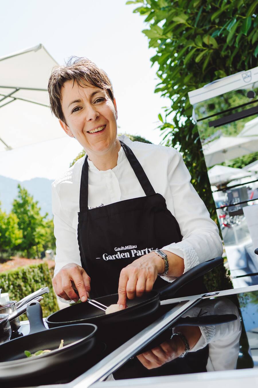 2015 war sie «Köchin des Jahres». Als Power-Frau an der diesjährigen Garden Party kombinierte sie Zutaten von nah und fern: auf den Punkt sautierte Jakobsmuscheln mit Kartoffelstock, Speck und Salbei.