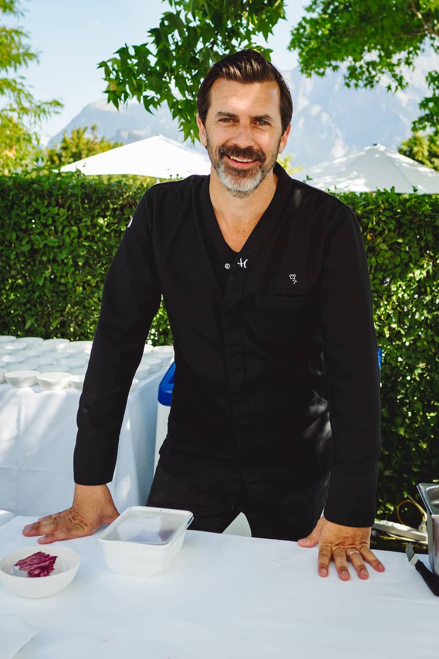 Für die GaultMillau Garden Party brachte der Schlossherr aus Schauenstein einen viralen Video-Star nach Bad Ragaz. Über 190’000-mal wurde sein Rezeptvideo für die Rotkohl-Kugel angeklickt auf dem GaultMillau-Channel. Ein Biss in die eiskalte Kugel offenbarte das darin versteckte Senfmousse und bewies: Das Gericht ist nicht nur im Video ein Star, sondern auch auf dem Teller.