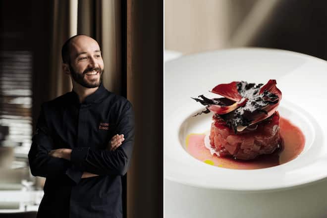 Hirsch vom Lej da Staz. Über «The View» wacht Andrea Dalsass, den die Gäste vom «Talvo» in St. Moritz-Champfèr her bestens kennen. Ein vielseitiger junger Mann: Er macht den Service besser, er kennt sich im Weinkeller aus – und er liefert das Wildbret ins Haus. Den 100 Kilo schweren Hirsch, dessen Fleisch als Tatar angeboten wird (mit Rotkohl und Buttermilch), hat Jäger Dalsass am Lej da Staz erlegt. Alternativen: Tuna Tatar mit Radicchio und Randen, Crudo von Kingfish und roten Garnelen. Die besten «Secondi»: Hummer-Linguine mit Zitrone und Tomaten, Kalbsbäggli, Brust und Keule vom Perlhuhn. Kalbskotelett nach Mailänder Art in drei Varianten. Die heftigste: «Valdostana Art» mit Trüffel und Raclette-Käse. GaultMillau-Rating: 15 Punkte.