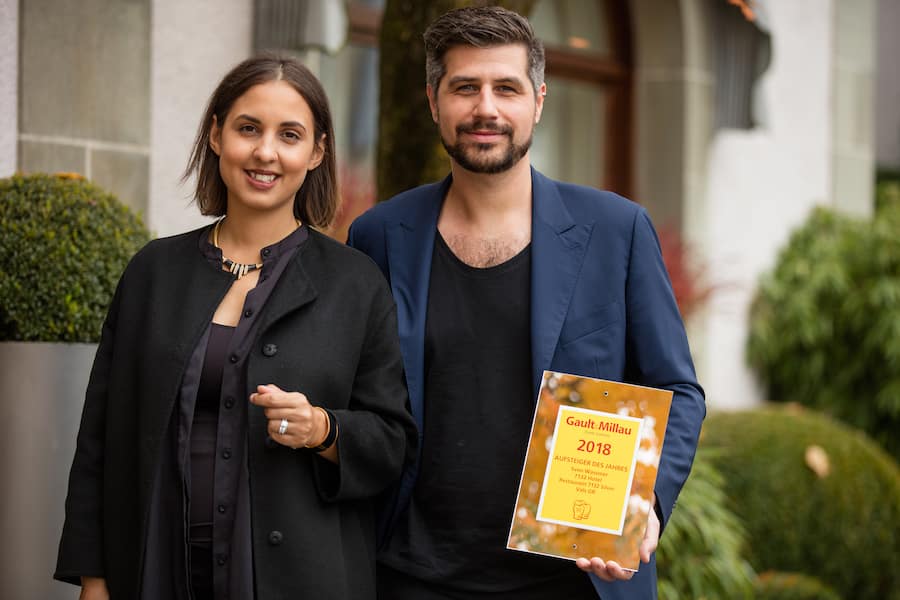 Chef’s talk! Andreas Caminada will sein erfolgreiches «Igniv»-Konzept exportieren und plant eine Test-Tournee durch Europa, geht zuvor mit seiner jungen Familie auf Weltreise. Philippe Chevrier stellte seinen ziemlich munteren dreijährigen Sohn Leonard vor, schwärmte: «Der Junge isst alles. Auch Austern, Schnecken und Froschschenkel.» «Aufsteiger des Jahres» Sven Wassmer treibt seine Familienplanung energisch voran: Er hat seine Sommelière Amanda Bulgin geheiratet. Sie verriet: «Ich bin im fünften Monat schwanger.» Die Wassmers flogen mit dem hoteleigenen Helikopter von Vals nach Lausanne, in Begleitung von Patron Remo Stoffel und seiner Frau Manuela Pesko.