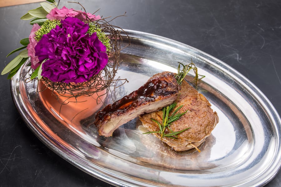 Kotelette «ganz anders»: Das Fleisch perfekt gebraten, den Knochen, 12 Stunden im Ofen geschmort, gibts separat.