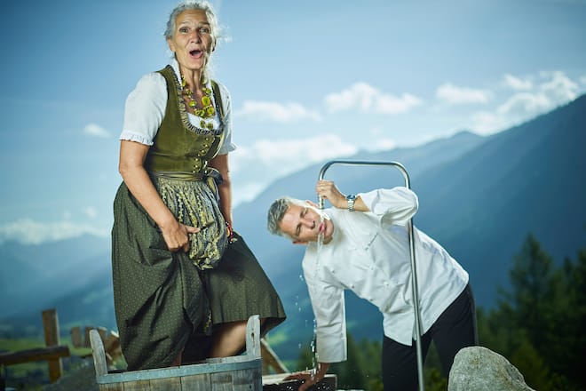 Eine Schule in Nepal. Mit dem «Seelenberg» hat es Gschwendtner schon zum zweiten Mal probiert. Auch beim ersten Versuch 2015 kam ihm die Natur in die Quere, und zwar ganz massiv. Er war mit seinem Partner und den Sherpas im nepalesischen Solo Khumbu unterwegs, als ein verheerendes Erdbeben die Region erschütterte und Tausende Tote forderte. Wieder unversehrt daheim, organisierte Gschwendtner zusammen mit seiner Frau Brigitte eine Benefizveranstaltung im «Castle». Beim Fest für Freunde und Gäste kam ein schöner Batzen zusammen, so viel, um letzten November damit eine Schule für 160 Kinder im Katastrophengebiet zu eröffnen. «Die Übergabe der Schule an das Dorf war vielleicht der bewegendste Moment meines Lebens», erzählt der «Castle»-Hausherr, der zuvor schon den Ausblick vom Dach der Welt genossen hat. 2014 stand Gschwendtner auf dem Gipfel des Mount Everest – als vielleicht einziger Spitzenkoch, der es auf 8848 Meter hoch geschafft hat. Jetzt nach der Saisoneröffnung im «Castle» am 8. Juni widmet er sich wieder ganz den kulinarischen Höhenflügen.