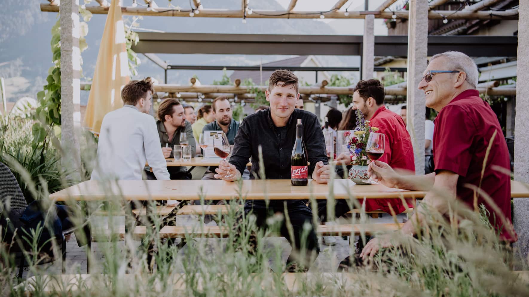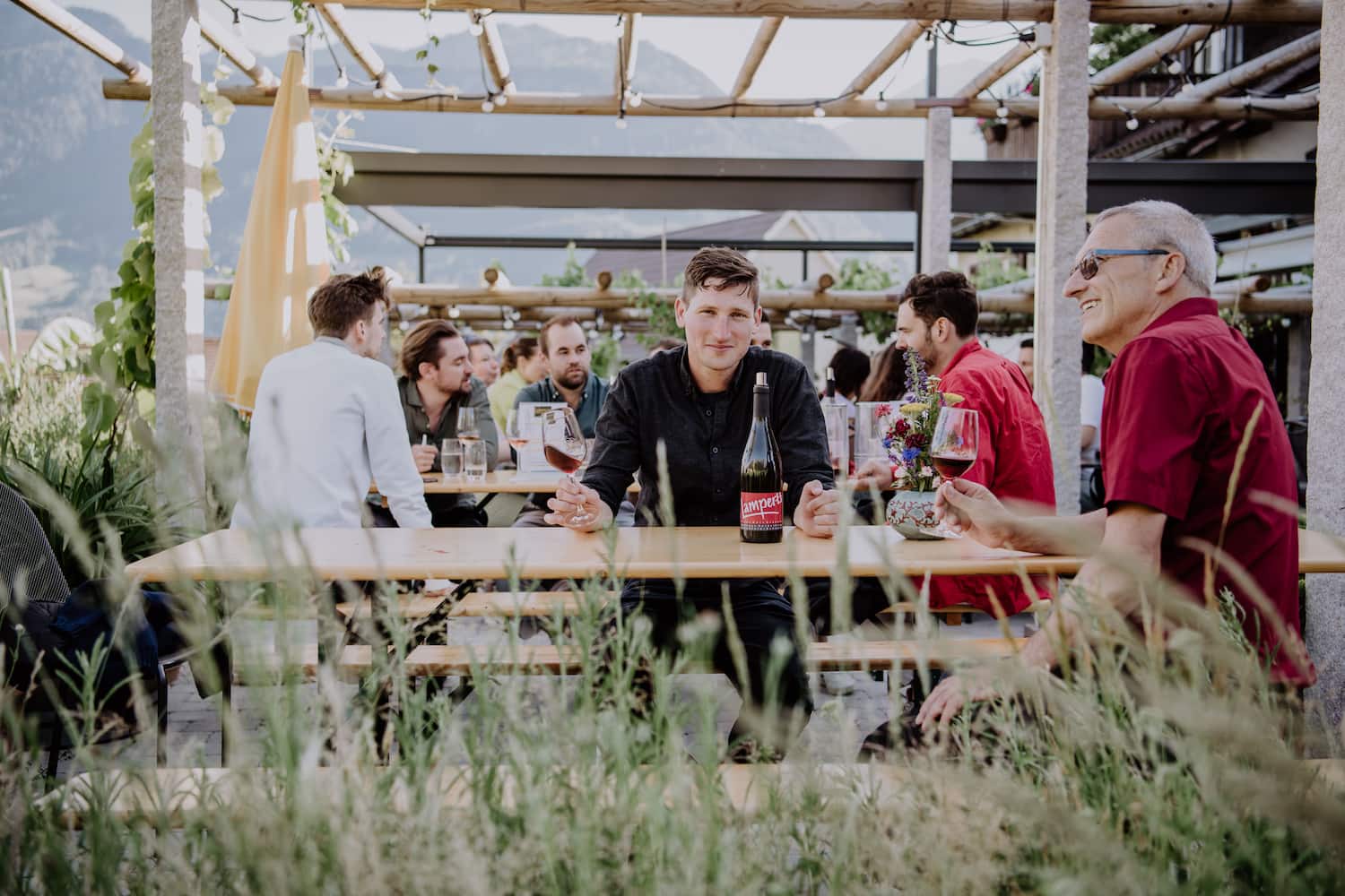 Drei GaultMillau-Köche mit Heidelberg-Weinen: Markus Schenk im «Corso» St.Gallen (16 Punkte). Matthias Althof im «Gasthaus am Brunnen» Valendas (15 Punkte). Jürg Stauffer im «Va Bene» Chur (13 Punkte).
