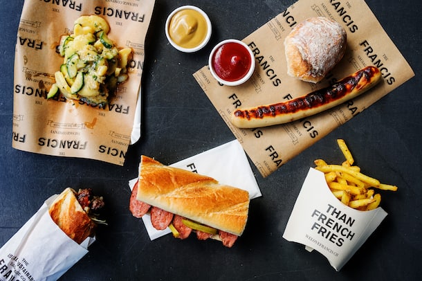 Angebot bei Francis Sausage Company in Zürich vor dem Globus