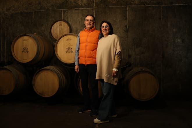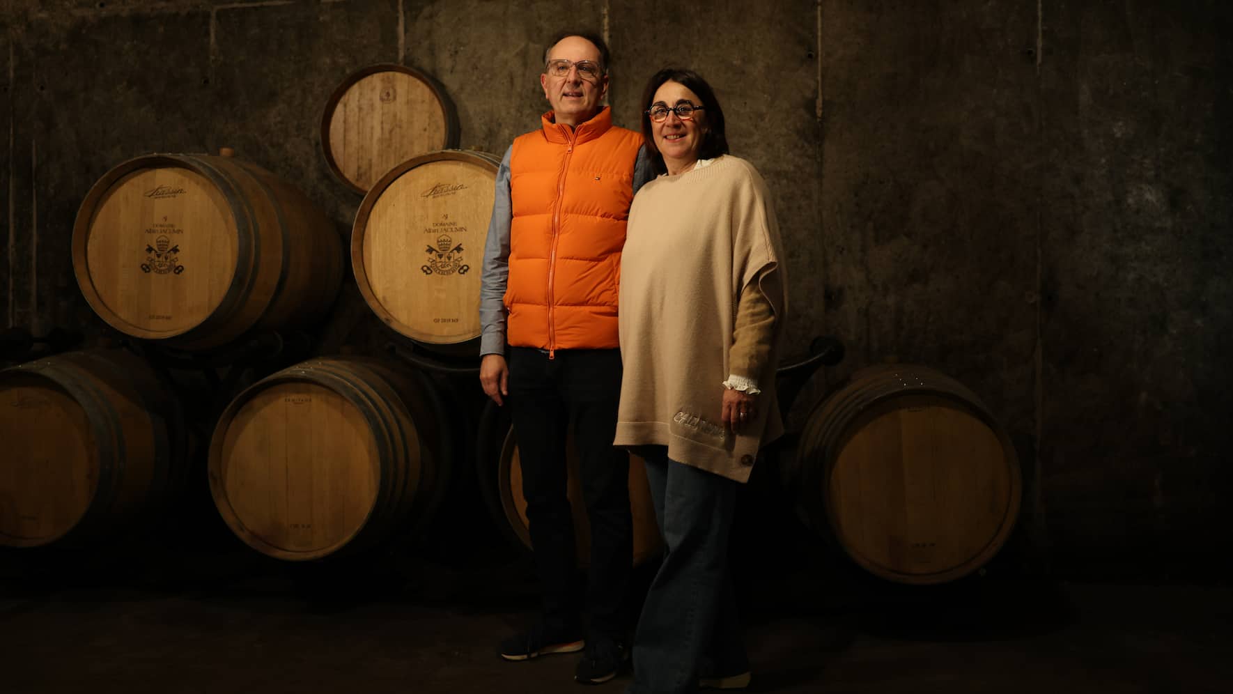 Pfeffrige Noten im Bukett. Nach dem Rundgang durch Produktionsräume und Keller setzen wir uns mit Albin Jacumin und seiner Frau Agnès an den Degustationstisch und verkosten den besagten 2022er-Jahrgang. Während der Hausherr die Gläser füllt, lässt die granatrote, mit violetten Reflexen durchsetzte Farbe des Weins unsere Vorfreude auf den ersten Schluck wachsen. Dann ist die Nase an der Reihe: Aromen von Kirsche, Brombeere und Cassis schmeicheln ihr. Auch pfeffrige Noten sind auszumachen. Am Gaumen bieten die samtigen Tannine eine wunderbar weiche Struktur, das Finale (schwarze Kirschen und Veilchen) hält lange an. Die dominierende Rebsorte ist – wie immer bei einem Roten aus der Appellation Châteauneuf-du-Pape – der fruchtige Grenache. Hinzu kommen Mourvèdre und Syrah, die wichtig für die Tanninstruktur sind, sowie Cinsault für eine Extraportion Kirscharomatik.