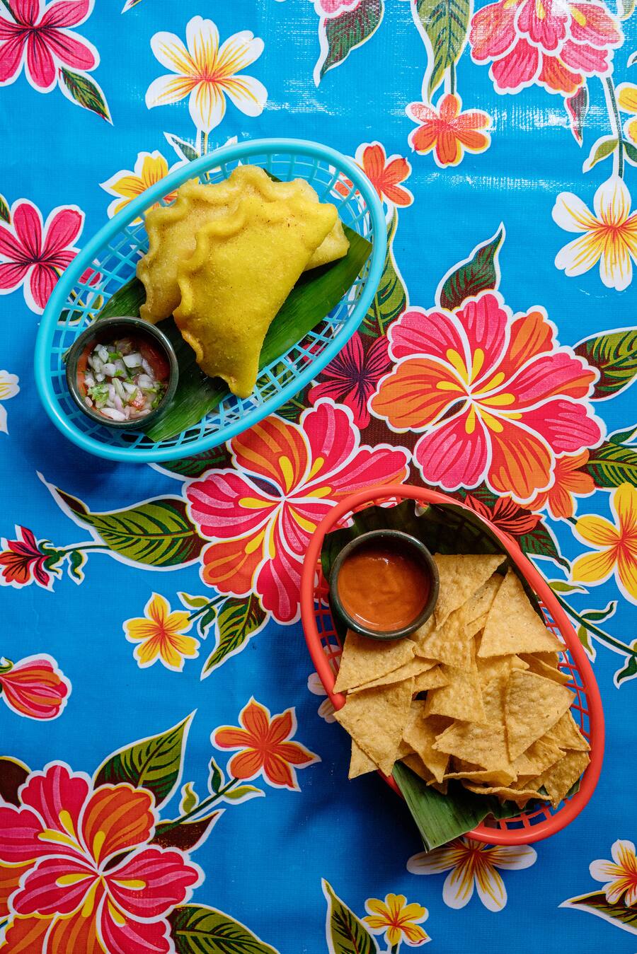 Wer Glück hat, findet ausser den Burritos noch zwei weitere Gerichte auf der Tafel hinter der Bar: Tamale und Empanada. Tamale bezeichnet eine gedämpfte Teigmasse aus nixtamalisiertem Maismehl, vermischt mit Fleisch und Zwiebeln. Ebenfalls aus Maismehl besteht der Teigmantel der Empanadas nach kolumbianischem Vorbild. Im Innern versteckt sich gezupftes Rindfleisch und ein Mix aus gebratenen Zwiebeln und Frühlingszwiebeln. Dazu gibts Salsa und «Pico de gallo» – die traditionelle Würzsauce aus Mexiko mit Tomaten, Zwiebeln, Koriander und Limettensaft. En Guete!