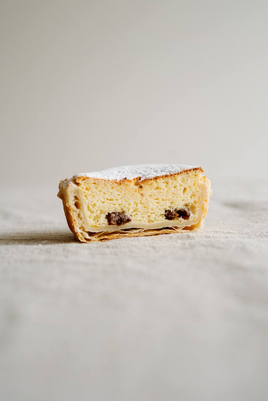 Beim Betrachten des Querschnitts fallen zwei Merkmale sofort auf: die luftige Füllung und der Blätterteig. Der Osterkuchen von Honold besticht ausserdem durch einen prägnanten Rosinen- und Milch-Geschmack, enthält aber nur wenige Reiskörner. Preis: 4 Franken. Erhältlich in allen Honold-Filialen.