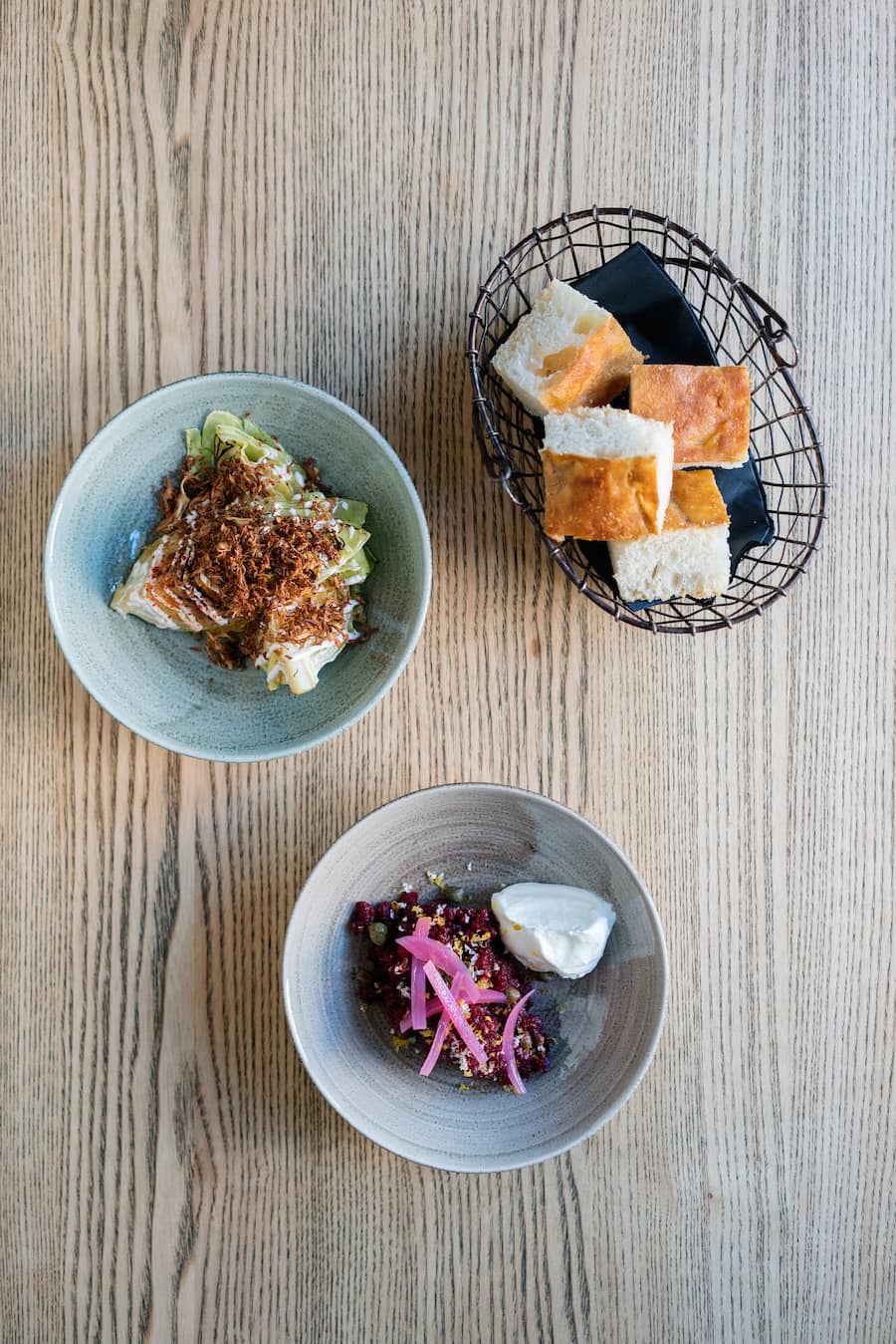 Zwei Highlights aus dem Menü: Randen-Tatar und Spitzkohl mit Kombucha-Mayonnaise.