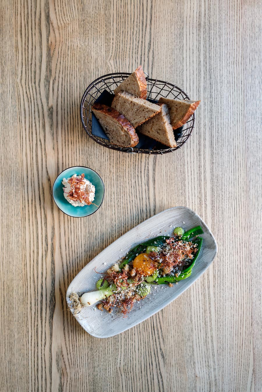 Alle Gerichte kommen zum Teilen in die Mitte des Tisches – wie Griebenschmalz und grillierte Frühlingszwiebeln.