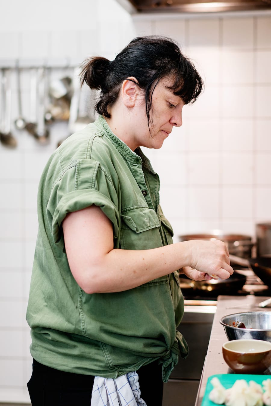 Die gebürtige Neuseeländerin kocht wild, virtuos und einfach das, worauf sie gerade Lust hat. Gyoza gefüllt mit Rinderhackfleisch und süsslicher Chili-Sauce, die auf eingelegtem Ingwer und Frühlingszwiebeln ruhen. Pochierter Schweinebauch an einer Sauce aus roten Bohnen und Szechuanpfeffer schwimmt in einer erfrischenden Zitronen-Orangen-Bouillon mit Koriander, roten Zwiebeln, Peperoni und Zucchini. Schonend gerösteter Pulpo beträufelt mit Zitronensaft, der ebenso durch Geschmack wie Zartheit glänzt. Oder Tonkatsu mit hausgemachter Sauce, gerösteten Auberginen und wohl dosiertem Ingwer, der sich erst im Abgang meldet ohne den Teller zu dominieren. Harrison-Lohri beherrscht nicht nur das Handwerk, sondern sprengt die Grenzen verschiedener Nationalküchen auf spielerische, unverkrampfte Art. Alle Gerichte bestechen durch Aromen, die sich auch einem kräftigen Cocktail entgegensetzen können.
